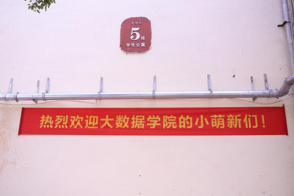 “热烈欢迎大数据学院的小萌新们”“大展宏图,数接千载,据联万里”“你们是0,我们是1,一起携手编程世界”大数据学院最是新潮,连迎新标语都充满了硬核元素。