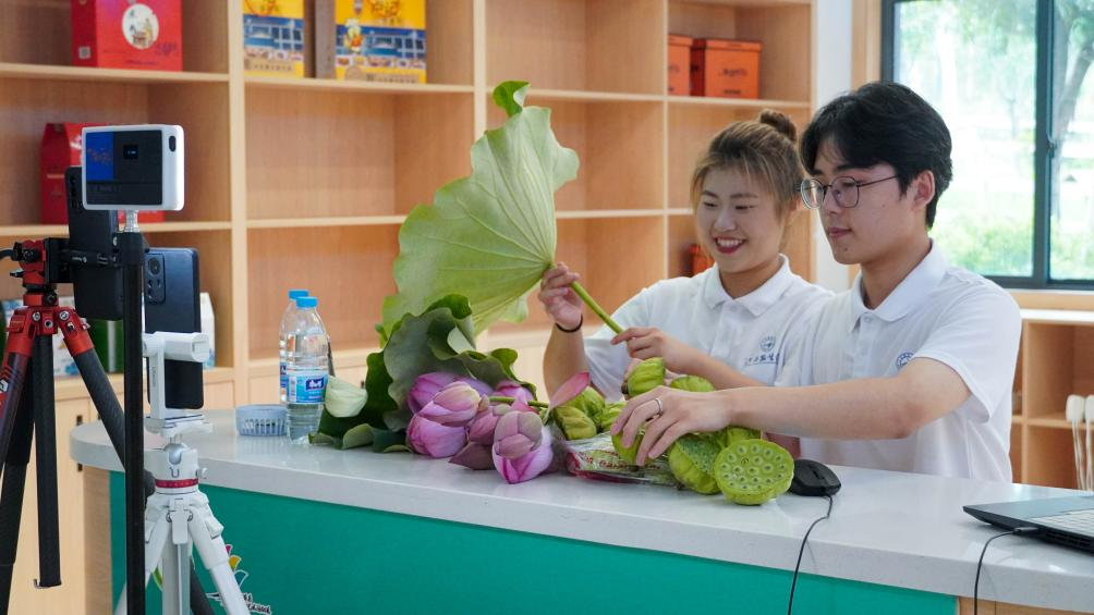 通过前期调研了解到黄马乡罗渡村农产品都是以自产自销为主,销售渠道狭窄,而村里常住居民大多数以老年人居多,于是实践队成员们决定展示自己在学校学习到的专业技能。就黄马乡罗渡村的产品产地、生态环境、产品质量、品牌文化故事为主线对其农产品进行了全面介绍,还邀请了产业负责人介绍当地的莲蓬,仔细讲述了从播种到成熟的过程,用最淳朴的语言为当地农产品宣传代言,江服青年用这样的方式帮助更多的人认识到罗渡村这个村落,认识到罗渡村既天然又健康的农产品。直播销售农产品正在为乡村振兴注入新活力,万象城平台时尚传媒学院“为爱发声,以声传情”暑期社会实践团队将“直播”与“助农”结合起来,助力罗渡村优质农产品“出圈”,将乡村产业振兴落到实处,不仅提高了江服青年知农懂农爱农的责任与担当,为地方经济发展贡献了青春力量,更为罗渡村农产品销售开拓了新舞台,让罗渡村的农产品走进乡村,逐梦沃野。