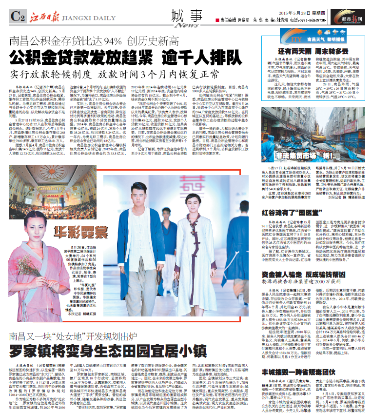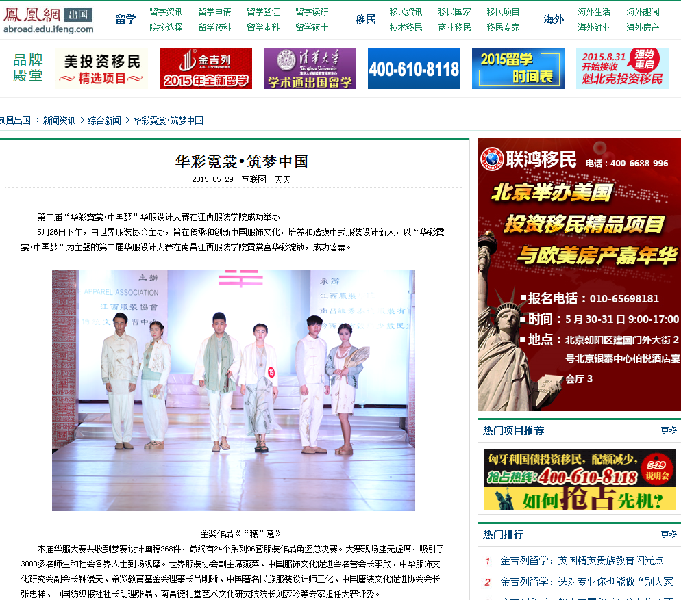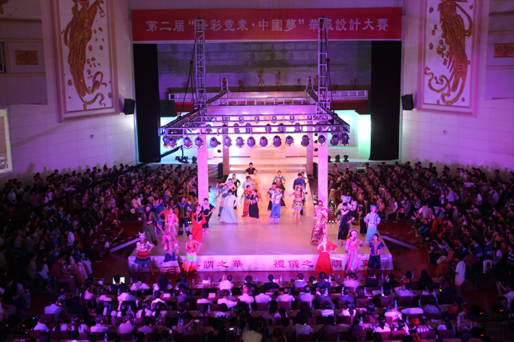 学通社讯(记者 李凡通 赵冉冉 方樱霓) 5月26日下午,由世界服装协会和江西服装协会及南昌孝谦传统文化学习中心联合主办,万象城平台和南昌毓秀泰德服装公司承办的第二届“华彩霓裳•中国梦”华服设计大赛在万象城平台霓裳宫完美落幕。来自2013级时装1班胡嘉玲同学的作品《穗意》摘得本次比赛桂冠。全球艺术家联盟主席姚继承、世界服装协会主席涂润华、少数民族服装设计师王菁以及学校副理事长涂顺强、党委书记李小南、校长陈万龙等校领导和各分院(部)的师生共计3000余人观看了华服比赛。