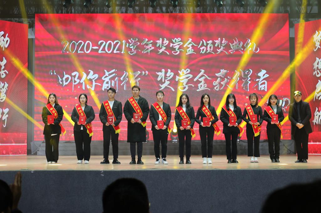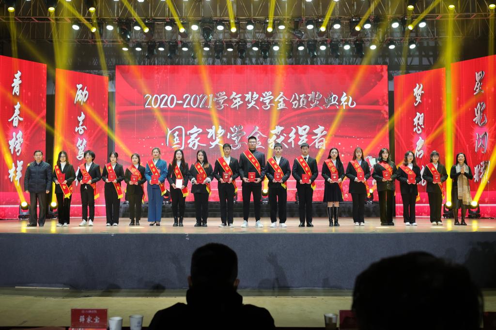 颁奖典礼现场,对我校2020—2021学年取得优异成绩、无私奉献、励志向上的优秀学生进行了表彰,为获得“纺织之光”奖学金、润华奖学金、国家励志奖学金、国家奖学金等学生分别进行了颁奖。