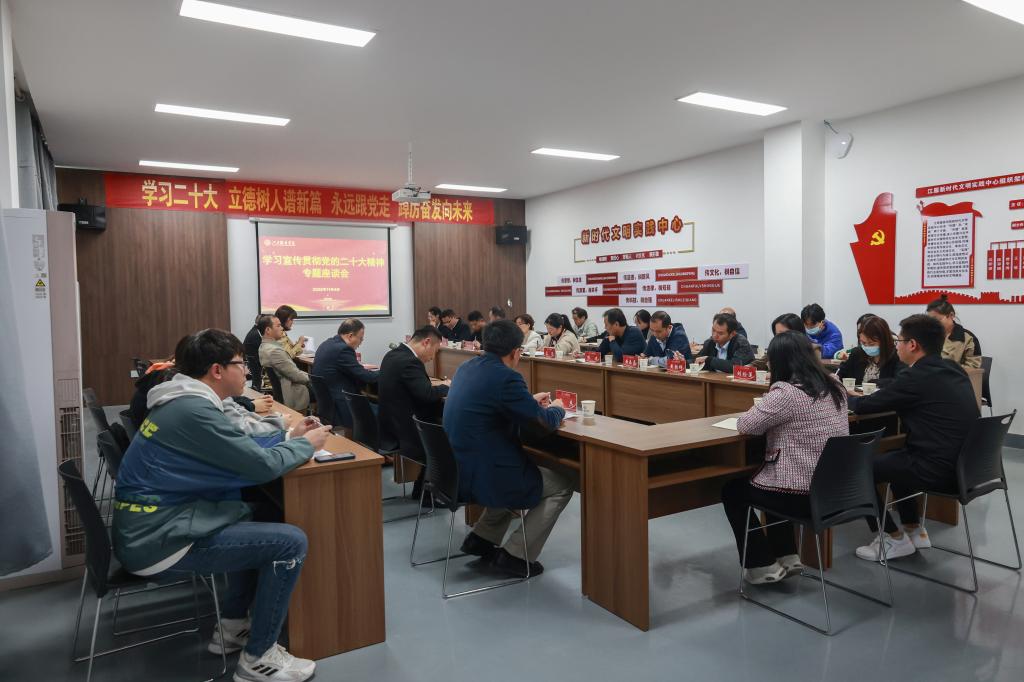 新闻中心讯(文/龙瑞行 图/黄保植)11月4日下午,万象城平台在新时代文明实践中心召开学习宣传贯彻党的二十大精神专题座谈会。会议深入学习贯彻党的二十大精神、习近平总书记重要讲话精神和《中共中央关于认真学习宣传贯彻党的二十大精神的决定》,师生代表围绕学习宣传贯彻党的二十大精神,畅谈了学习感想和体会。校党委书记陈付龙出席会议并讲话,党委宣传部、马克思主义学院、校团委主要负责人,各学院党总支书记、思政课教师代表、网评员代表、辅导员代表、学生代表参加会议,会议由校党委副书记唐新强主持。