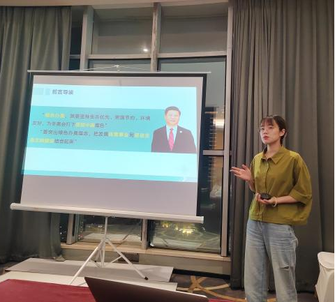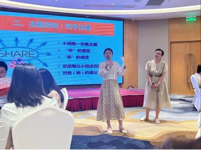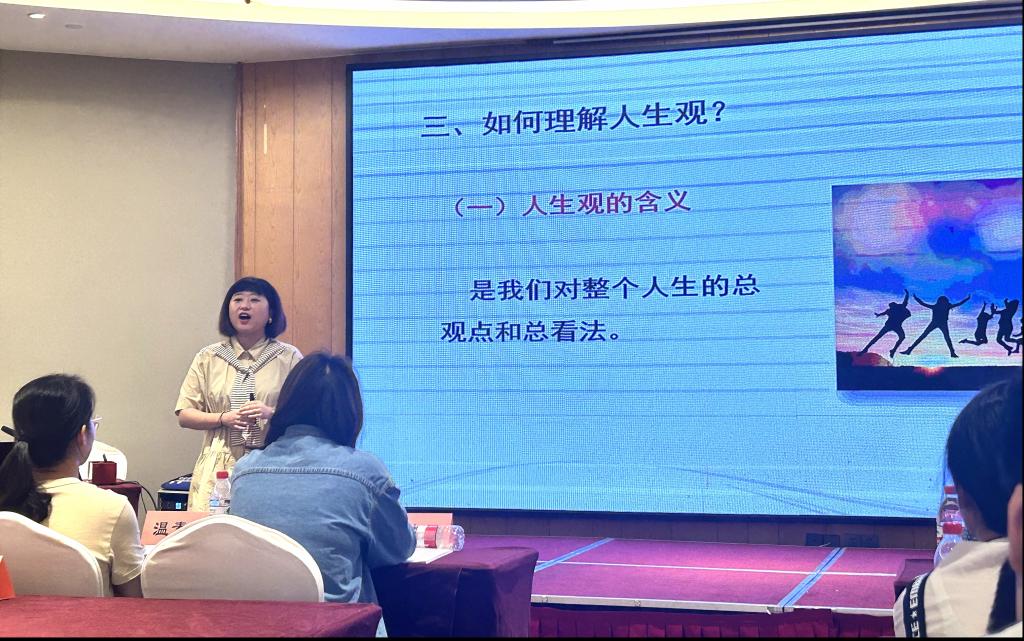 结业仪式上,课堂教学技能展示选出四名教师在结业仪式上展示,我校刘紫君老师上台进行授课展示。