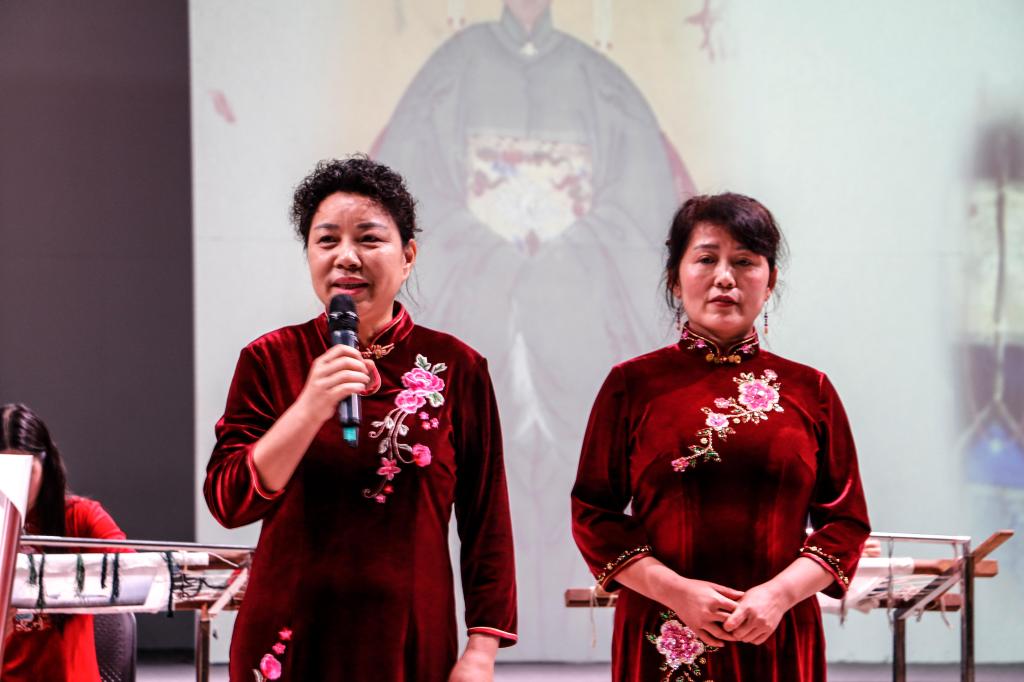 服装报讯(实习记者 李珊 程子业 郭志闯) 3月16日下午,赣绣(豫章绣)传承人余正连、周南英应邀来校举办赣绣(豫章绣)省级非物质文化遗产观摩赏析活动。