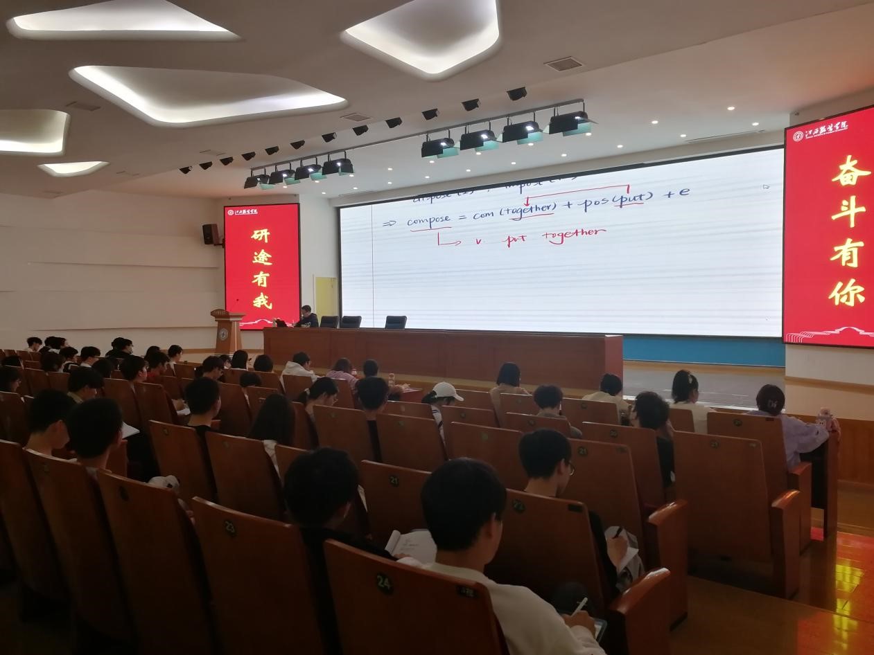 开班仪式上,质评中心马老师解读了当前考研人数激增与就业环境的严峻形势。他勉励同学们要充分利用学校寝室、图书馆、食堂、教室和自习室等舒适的备考环境和丰富的备考资源,及时调整复习心态,制定好个人备考计划,以心怀“长风破浪会有时,直挂云帆济沧海”的信念,来迎接“山重水复疑无路,柳暗花明又一村”的硕果。