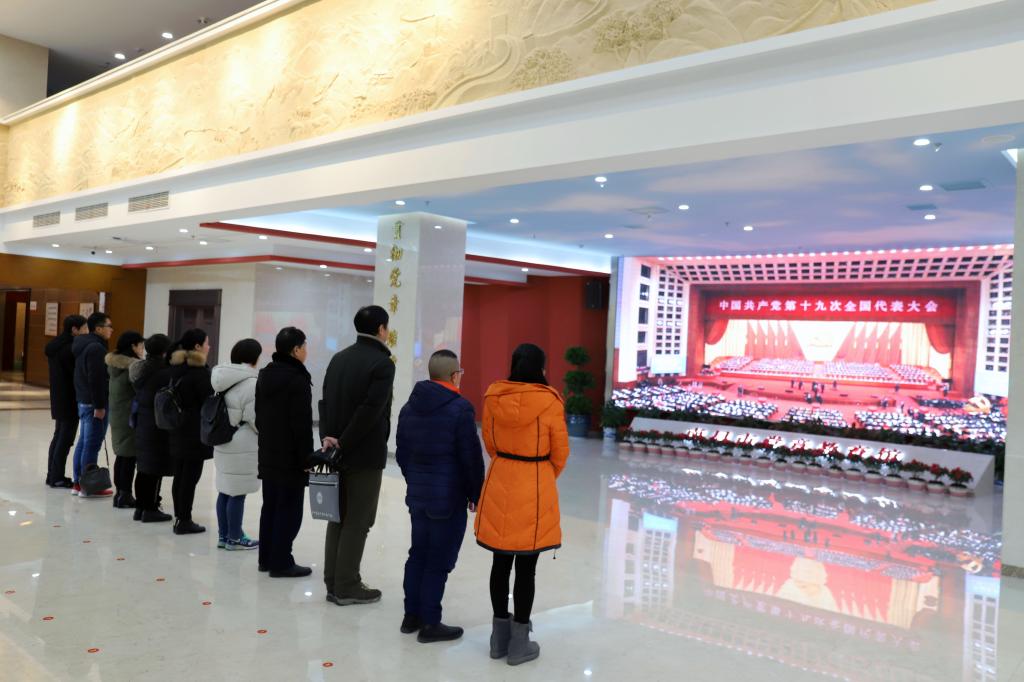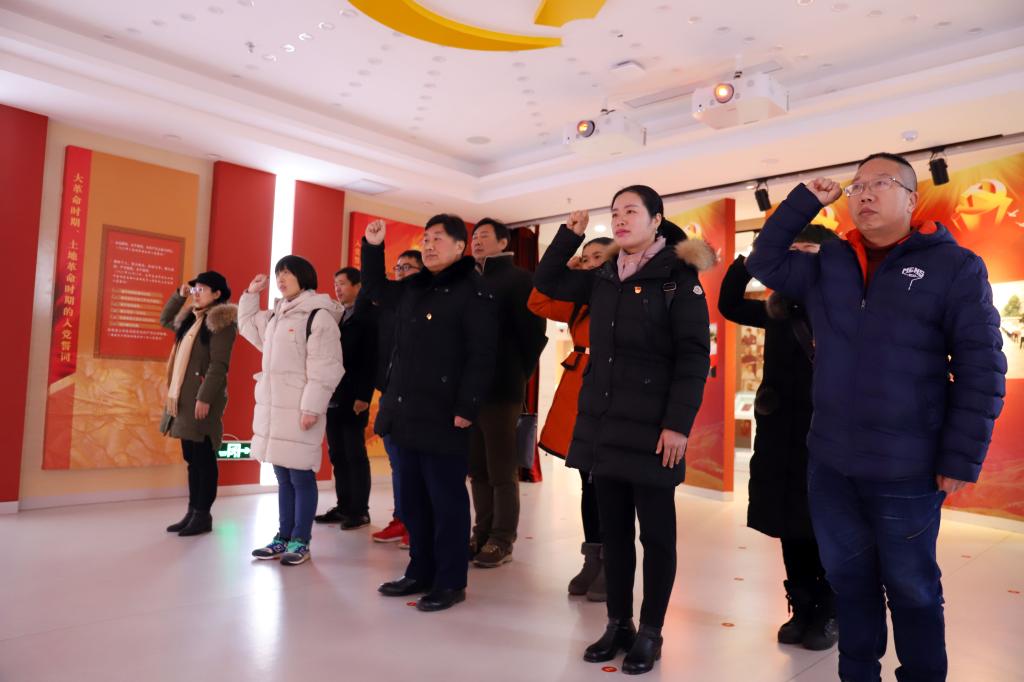 随后,机关二支部的党员们跟着讲解员,一边走一边学,回顾党章的历史沿革,对党的总纲、党的组织制度、党的纪律、党员的权利义务和基本要求、党的纪律进行深入学习。在宣誓厅宣誓墙前,党员们了解了从建党初期到如今使用的入党誓词演变。面对党旗,全体党员庄严地举起右手,重温了入党誓词。通过参观学习,在耳闻目染中把“不忘初心,牢记使命”的崇高信念烙进心灵深处。