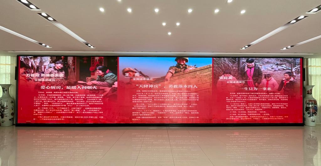 学校通过LED显示屏、宣传展板、条幅、电子屏等多种形式展示全国道德模范、江西省道德模范的先进事迹。他们中有坚守18年最暖人间烟火的万佐成、熊庚香夫妻,有勇救落水四人的“天降神兵”王亮,有“千锤百炼”铸就航空工匠的孙滨生,有三闯火海勇救人的见义勇为模范周发春,有一生只为一事来的支月英,还有敬业奉献模范的高梅梅等等。他们的故事鲜活生动、真实感人,每一个都展现了他们的风采和高尚情操。让全校师生深受教育和感动。