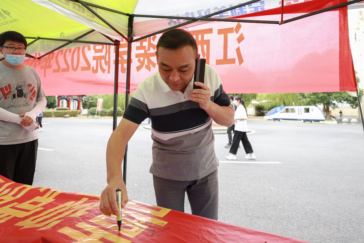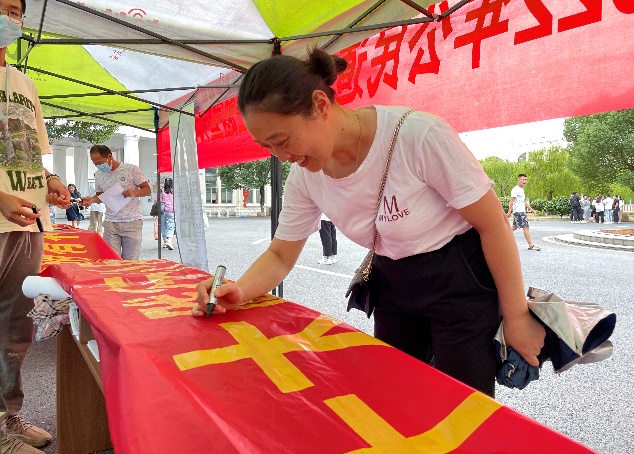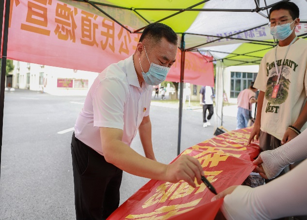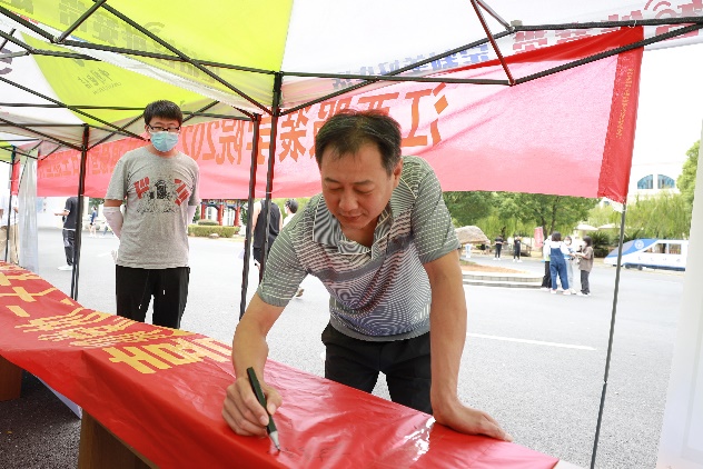 9月20日中午,党委宣传部学生记者在校园内开展公民道德宣传活动。活动中,志愿者们在清源区、西区通道口向过往学生发放《公民道德倡议书》等宣传资料,讲解文明礼仪、道德规范,重点内容宣讲《新时代公民道德建设实施纲要》,号召广大学生遵公德、守道德、扬品德,从我做起,自觉践行社会主义核心价值观。活动结束后,志愿者们发起“喜迎党的二十大 践行公民道德,做文明有礼大学生”签名活动,吸引百余名师生参与签名,立下文明誓言。