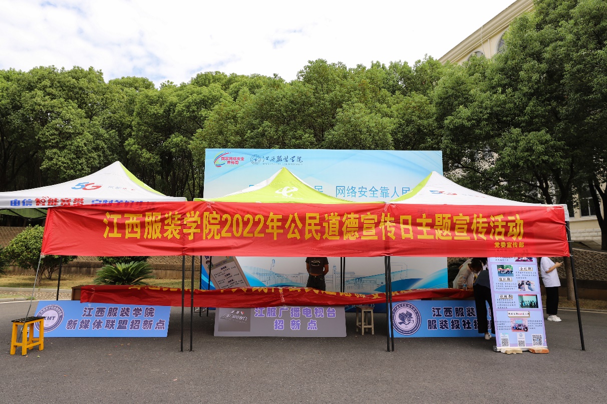 新闻中心讯(文/万强 图/王琼 黄保值 刘士豪)今年9月20日是全国第二十个“公民道德宣传日”。为贯彻落实《新时代公民道德建设实施纲要》和《新时代爱国主义教育实施纲要》,积极培育和践行社会主义核心价值观,引导广大师生积极参与公民道德建设,提升学生道德素质。9月20日至24日,校党委宣传部集中开展“喜迎党的二十大 践行公民道德 做文明有礼大学生”为主题的第二十个“公民道德宣传日”系列活动,传播文明精神,弘扬道德力量。