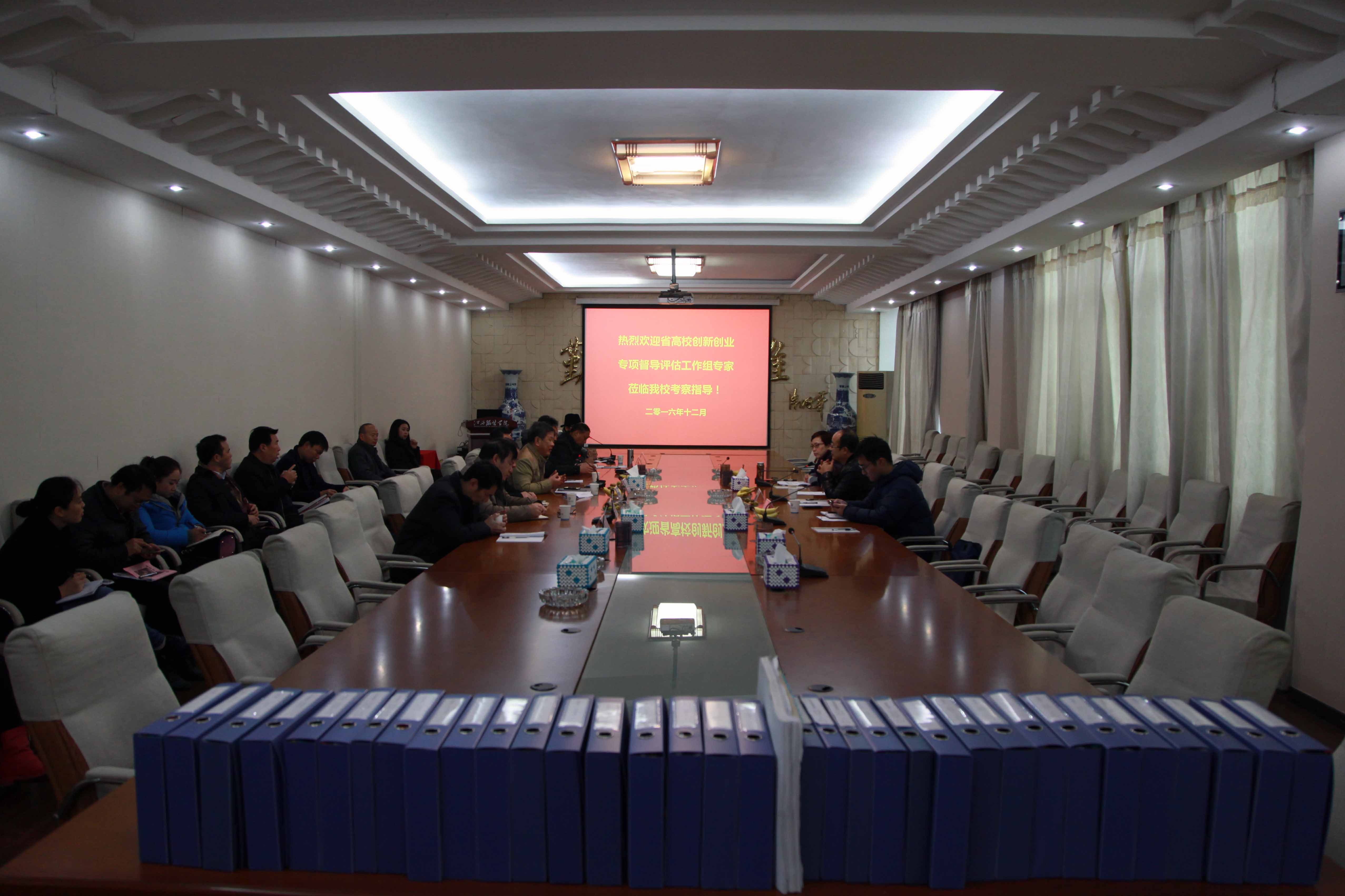 服装报讯(文/明海 图/万强)12月14日,由省督学、赣南医学院院长韩立民为组长的省高校创新创业教育专项督导评估专家组莅临我校评估创新创业教育工作。上午8点30分,在行政楼二楼会议室进行了汇报会。汇报会由党委书记王建元主持,评估专家组听取了校长助理易城作的万象城平台创新创业教育工作汇报。