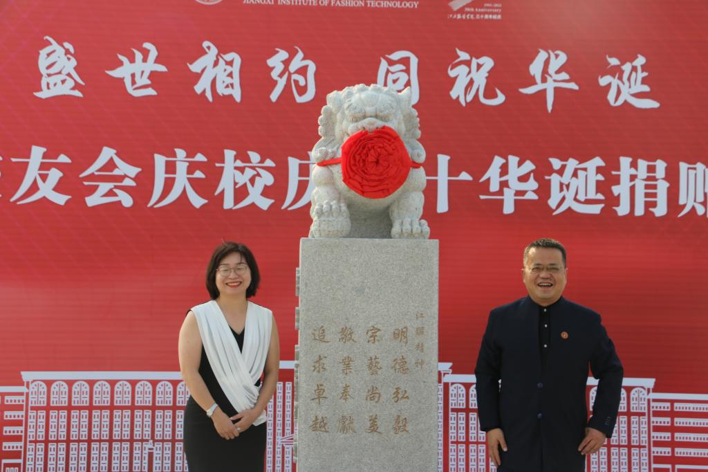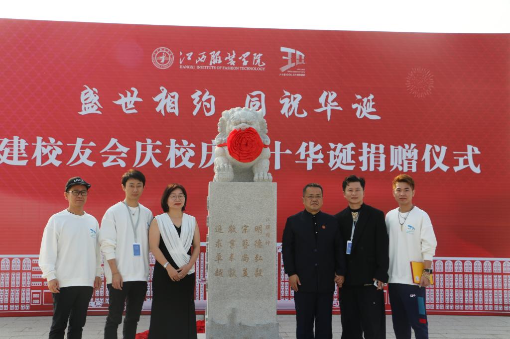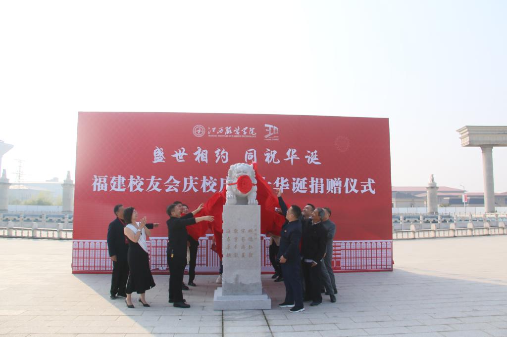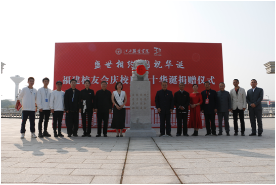 随后,涂顺强理事长、涂燕萍副理事长、胡圣礼、李国祥、王建元、王德保、赵子健、副书记副校长李宝君、理事会办公室主任康娜以及校友代表何艳丽、朱志杰共同为“江服精神碑”揭牌。