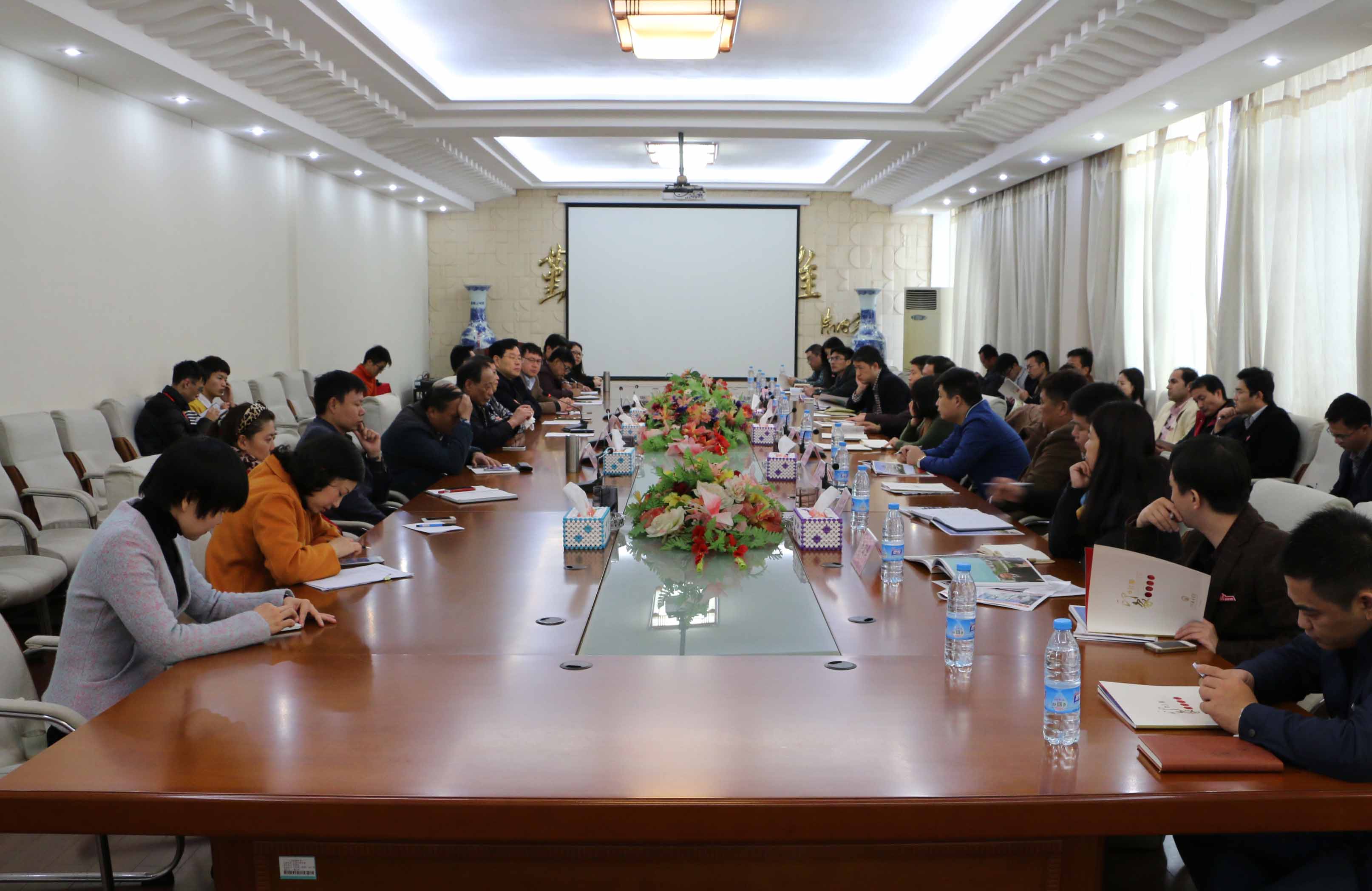 会上,陈万龙代表学校致欢迎词,并简要介绍了我校办学历史和学科建设、专业设置、人才培养等方面的发展情况。他说,我校长期坚持走“内涵式、特色型、国际化”的办学思路,坚持“特色立校,质量强校”,走特色路线,办专业院校。对此,学校花费大量资金建设服饰文化陈列馆,拥有大量实验实训基地和工作室等,这些都推动了校园的文化建设,对我校服装文化的发展起到了重大的推动作用。同时,服装文化陈列馆也作为学生们获得灵感的场所。最后,校长陈万龙谈到,我校理事长涂润华对学校的引领作用是很大的,涂理事长不仅有教育情结,也拥有教育情怀,坚持为公益事业奋斗的胸怀。饶贵生对我校的热情接待表示感谢,并就泰豪动漫学院的办学情况和考察交流的目的等作了简要的说明。他对我校的校企合作的实践、服饰文化的建设予以高度认同。