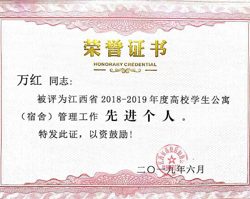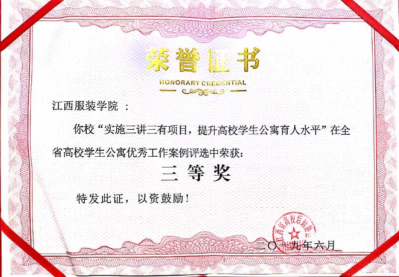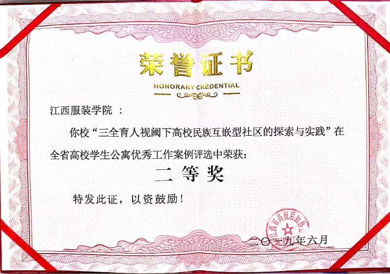 服装报讯 6月12日—14日,江西高校后勤协会学生公寓管理专业委员会会员大会在江西省南昌市召开,会议表彰了2018年度全省高校学生公寓(宿舍)管理工作先进单位、先进个人,遴选出了2018年度全省高校学生公寓优秀工作案例。我校荣获2018年度“江西省高校学生公寓(宿舍)管理工作先进单位”荣誉称号,这是我校连续第四年获得此殊荣。宿管科万红、熊招凤两位老师获得2018年度学生公寓(宿舍)管理工作先进个人荣誉称号,我校宿舍管理工作案例《三全育人视阈下高校民族互嵌型社区的探索与实践》获得全省高校学生公寓优秀工作案例二等奖,《实施三讲三有项目,提升高校学生公寓育人水平》获得全省高校学生公寓优秀工作案例三等奖。