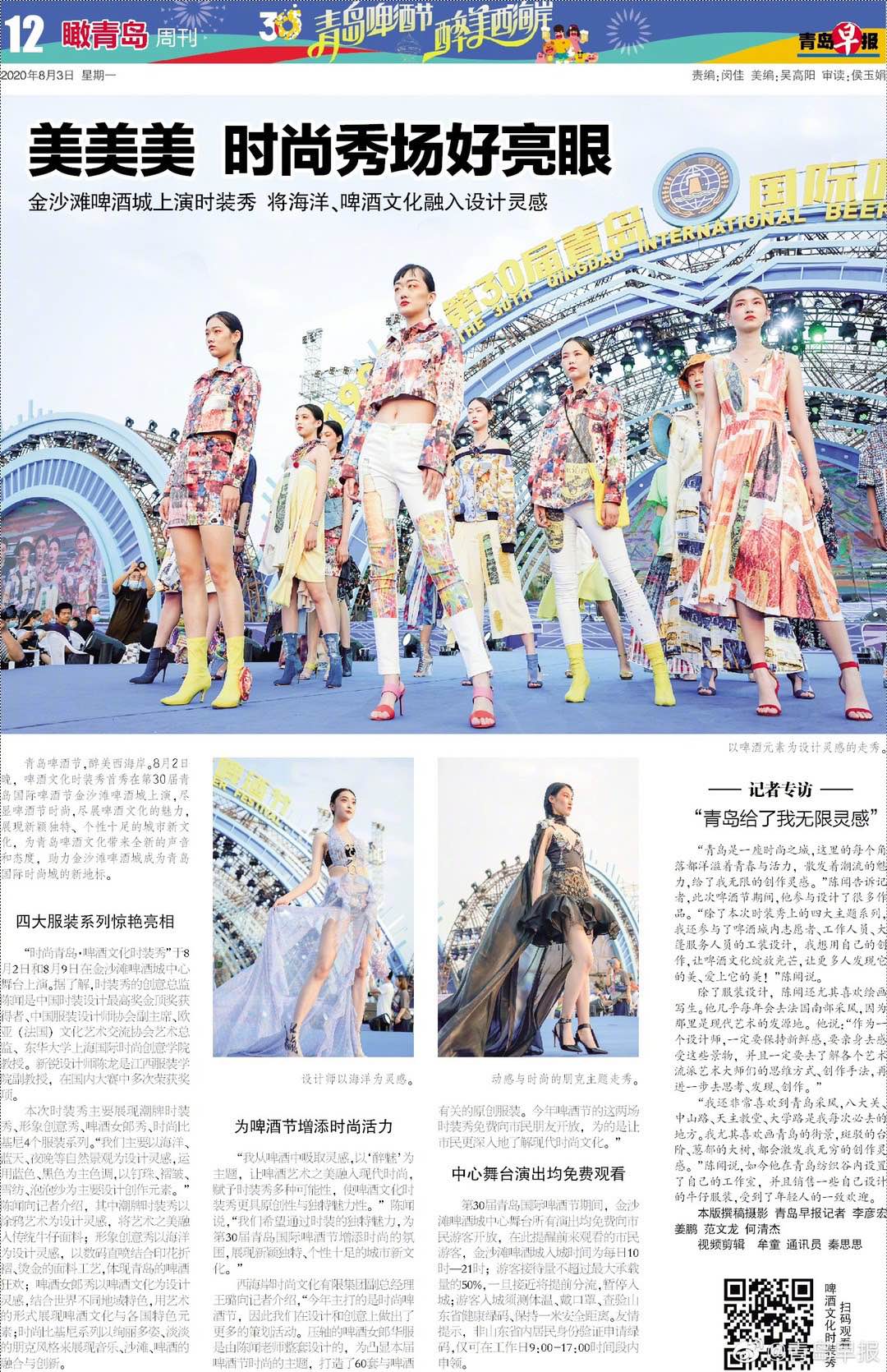 新闻中心讯:8月2日——8月9日,第30届青岛国际啤酒节“啤酒文化时装秀”在青岛金沙滩啤酒城绝美上演。本次时装秀从啤酒中吸取灵感,以“醉魅”为主题,以啤酒之醉,城市之魅,让啤酒艺术之美融入现代时尚,激情的笔触给予新的时尚活力,赋予时装秀多种可能性。时装秀创意总监陈闻携手我校教师、新锐设计师陈龙运用独特的时装展现出啤酒的时尚元素,升华着啤酒文化的魅力和内涵,给观众带来一场与众不同的的视觉盛宴。