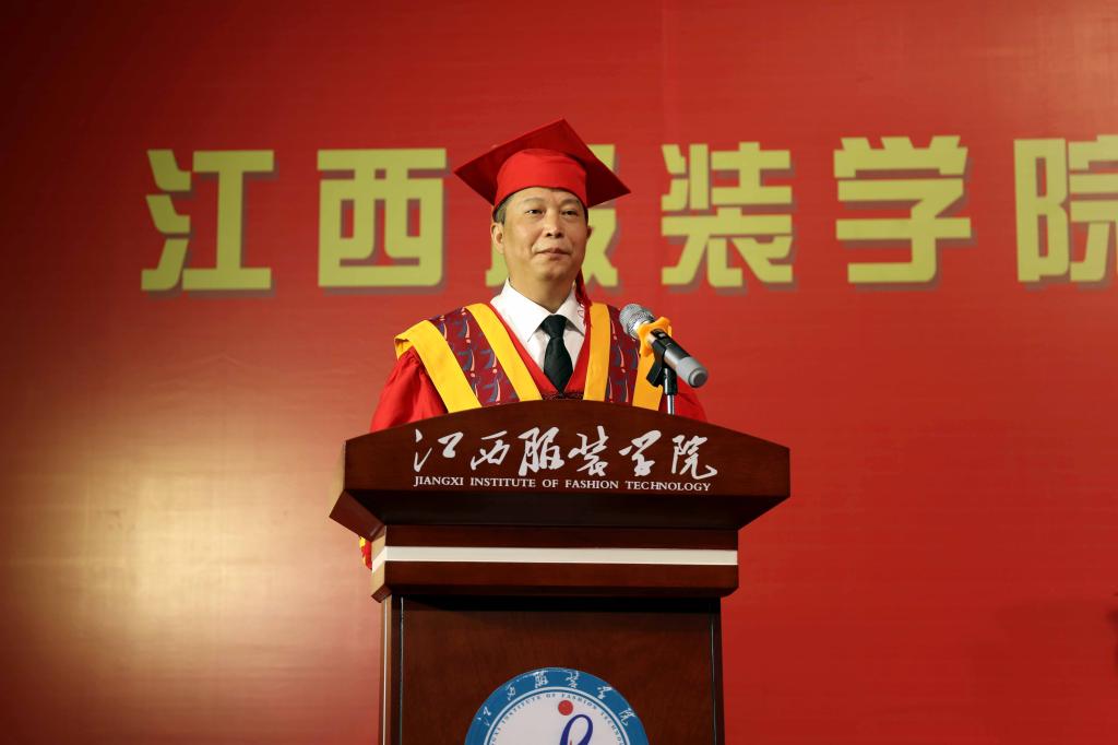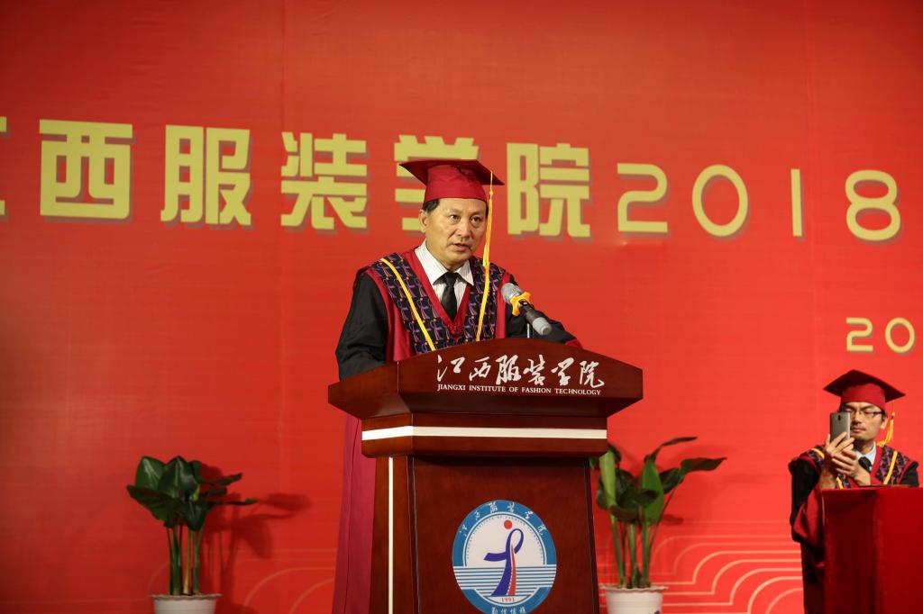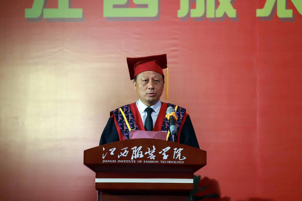 全国五一劳动奖章获得者、服装工程学院教师郭晓强作为教师代表发言。他首先向全体毕业生表达了热烈的祝贺,并希望广大毕业生在新的起点上不断努力,创造新的辉煌。他说,希望同学们在今后的工作中、生活中,永葆勤奋、信用、博学、雅致的心态和行为,希望你们敢为人先,主动担起应尽的责任,青出于蓝而胜于蓝,把江服的梦想沿续,变成现实。做一个对社会、对家庭、对他人有益的人,做一个理性而追求至善的人!