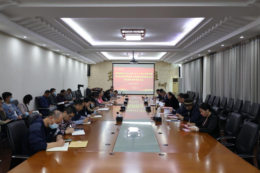 新闻中心讯(文/龙瑞行 图/万强)10月14日上午,我校在行政楼二楼会议室召开党委理论学习中心组(扩大)第十次学习会暨用好省政协调研成果 推动高校思想政治工作高质量发展专题学习会。校党委书记陈付龙主持会议并讲话。校党委委员、各党总支书记、机关支部书记及相关职能部门负责人参加会议。