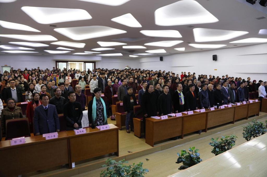 校友总会成立大会在庄严的国歌声中拉开序幕。
