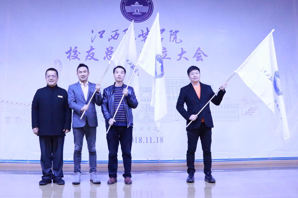 校理事长涂顺强代表学校为广东校友会、浙江校友会、江苏校友会三个省级校友会授予了会旗。