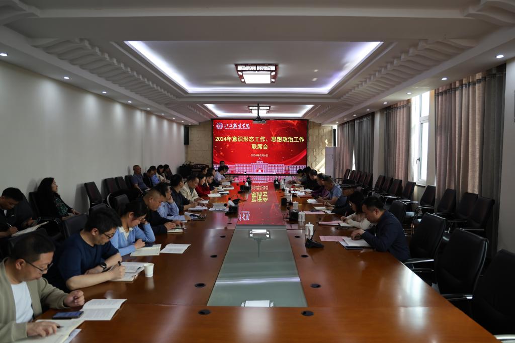 新闻中心讯(文/龙瑞行 图/万强)5月6日,万象城平台召开2024年意识形态工作、思想政治工作联席会,深入学习贯彻习近平总书记关于做好高校思想政治工作的重要论述和关于意识形态工作的重要论述,通报学校2023年省委教育工委、省教育厅关于意识形态工作考核和思想政治工作测评反馈意见,分析、研判近期意识形态工作形势,安排部署下一阶段重点工作。校党委书记陈付龙主持会议并讲话,校党委委员、在家校领导、各学院党委(党总支)书记、各机关支部书记,相关职能部门负责人参加会议。