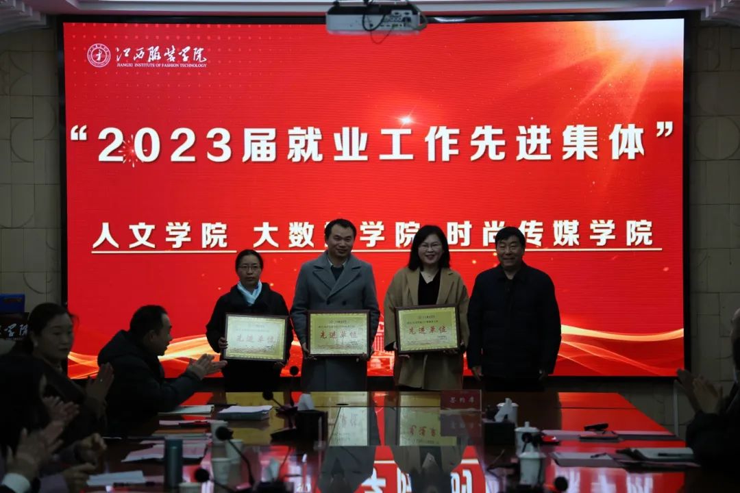 会上,校党委副书记唐新强宣读了《关于表彰2023届毕业生就业工作先进集体与先进个人的决定》,授予人文学院、大数据学院、时尚传媒学院三个学院为“先进单位”荣誉称号,同时授予卢永红等十四位班主任为“先进个人”荣誉称号。他表示,受到表彰的先进集体要充分发挥示范引领作用,再接再厉,再创新高,全校各单位要以先进为榜样,同心聚力,砥砺奋进,促进学校就业工作更上新台阶。