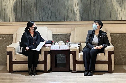 北京服装学院副校长廖青对涂燕萍副理事长一行的到来表示热烈欢迎,特别提到两所学校都以“服装”命名,办学特色鲜明,并对北京服装学院的发展历史、人才培养战略等基本情况进行了介绍。国际合作与交流处处长、国际学院院长张葳从国(境)外高校校际合作模式、国际学生教育发展概况、国际学生招生、培养与管理等多方面详细介绍了北京服装学院国际交流合作所取得的成绩和经验。