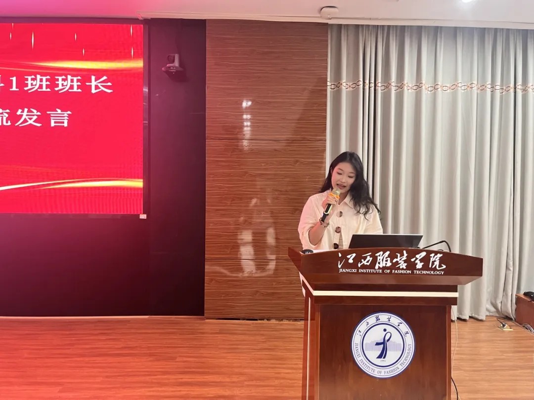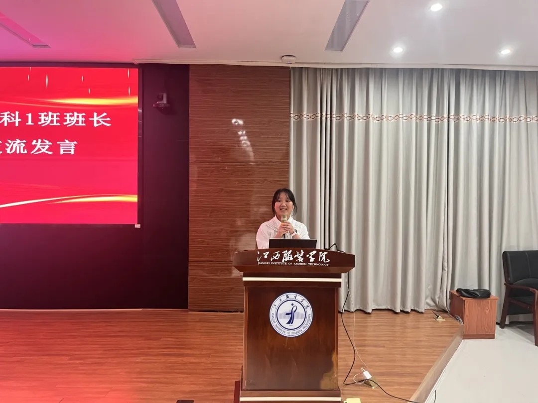 时尚传媒学院23动画本科1班班长胡杨蕊作班级管理交流发言。她指出,班级同学来自五湖四海,要尊重同学作为独立个体的价值,在发生矛盾与冲突时,及时站在另一方的角度换位思考、理解他人,以更为和平、理性的方式去处理矛盾,才能让班集体更为团结。