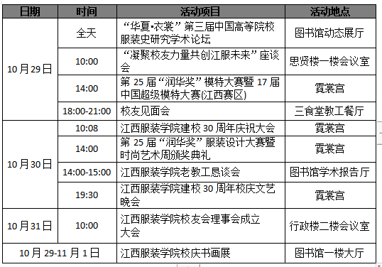 30周年校庆主要活动安排