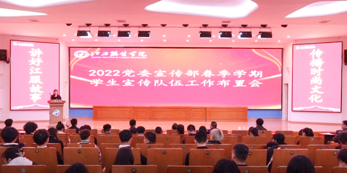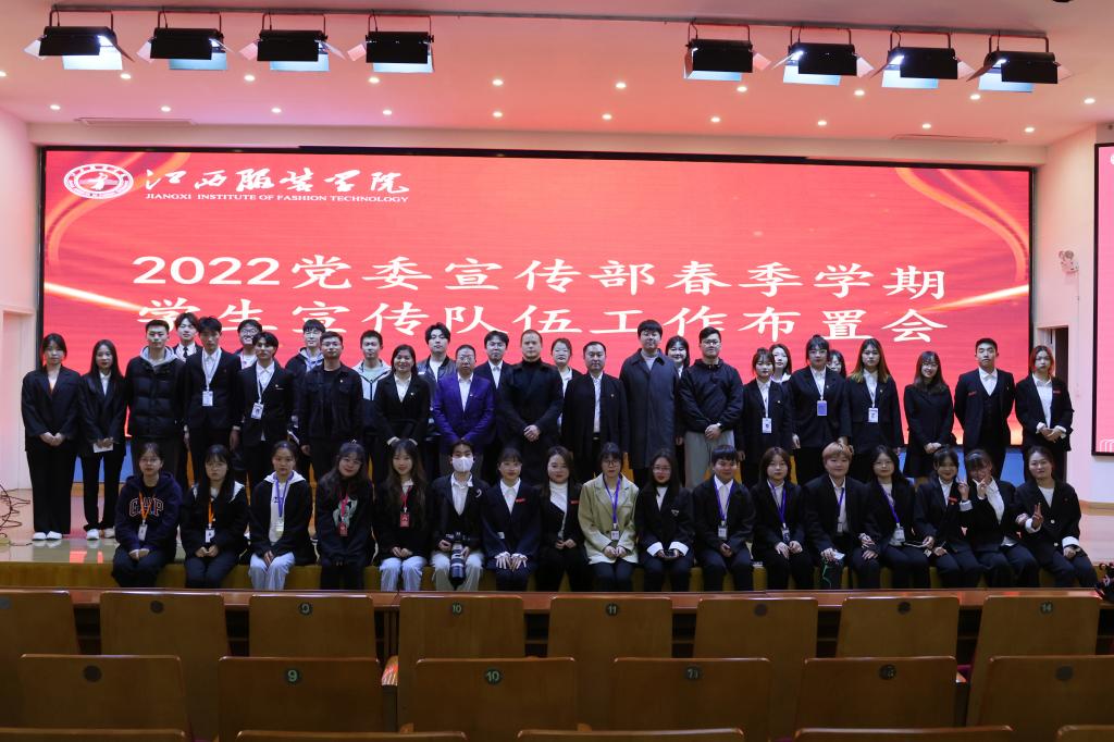 (新闻中心讯 记者肖同彤、实习记者朱美珍)为总结回顾2021年宣传部宣传工作,部署2022年学生宣传队伍工作,统一思想,凝聚力量。3月3日晚上18点,我校在思贤楼三楼报告厅召开2022年党委宣传部春季学期学生宣传队伍工作布置会。校党委副书记唐新强出席会议并讲话,党委宣传部部长沈新建、副部长朱雨春、宣传部指导老师万强、龙瑞行、徐志勇,以及江服新媒体联盟、服装报社、江服广播电视台全体成员共计400余人参加此次会议。会议由部长助理李金燕主持。