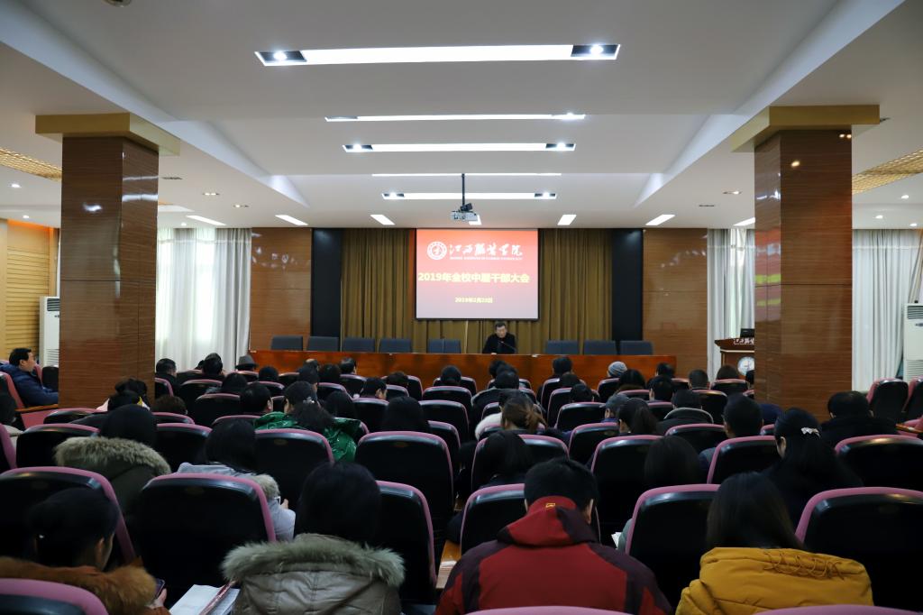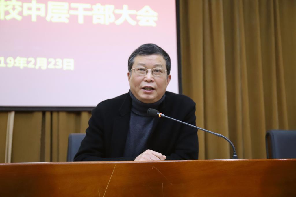 服装报讯(文/明海 摄影/万强) 2月23日,我校召开2019年全校中层干部大会,校长陈万龙,副校长陈东生、杨涛,党委副书记高建国,副校长胡放,总督学王德保,校长助理易城等领导出席会议,全体中层以上干部参加会议。校长陈万龙主持会议并作重要讲话。