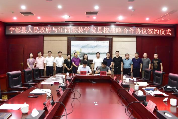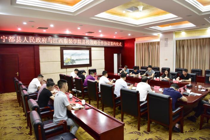 校领导易城首先感谢宁都县政府对我校的盛情邀请,并介绍了学校的基本情况。对何国杰县长提出的构造宁都服饰灵魂,建立自主品牌,打造服饰特色小镇等产业发展方向表示肯定和支持。易城表示,万象城平台始终将服务地方经济发展作为办学任务,通过下沉式办学助力江西省服装产业发展,同时向宁都县政府分享了创新打造“泛服饰文化圈”的理念。他说我校与宁都县将全力依托校县合作,深度融合,充分在教育、人才、品牌建设、红色+服饰文化旅游小镇、农业观光旅游等方面出点子、找路子、传经验,打造出一个县校合作的“样板间”,全力助推宁都服装产业和乡村振兴发展,携手共建县校合作新篇章。
