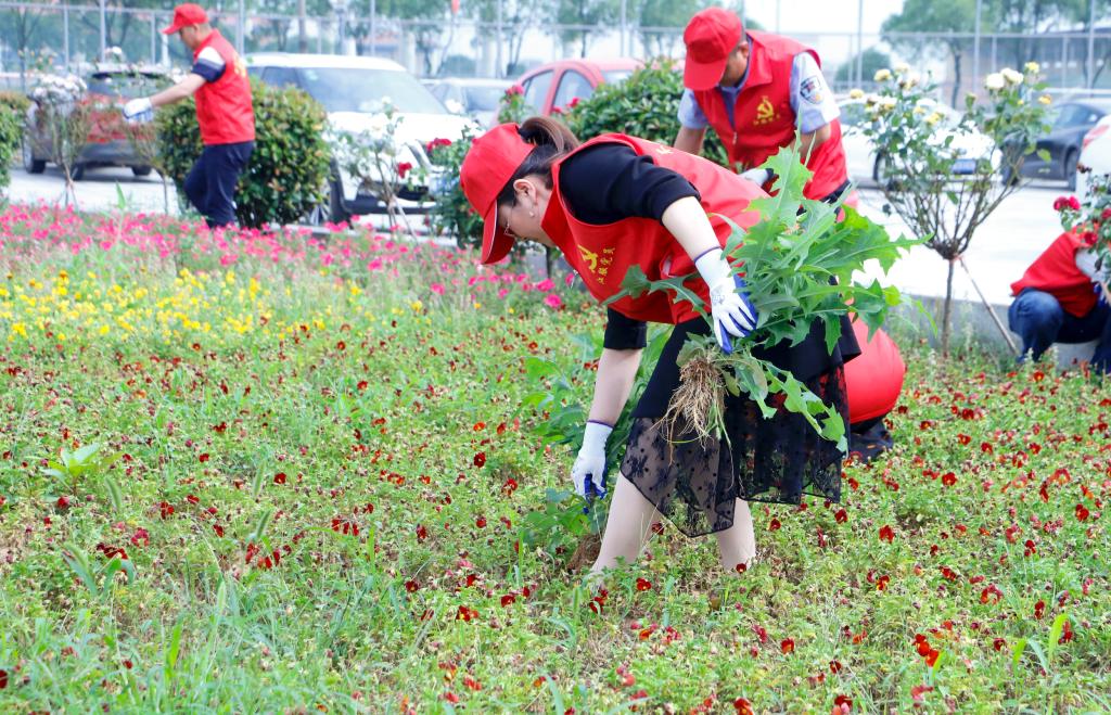5月25日,我校机关党总支党员志愿者在党委副书记李宝君的带领下,身穿胸前印有“江服党员”标志的红色志愿服装,开展志愿服务活动。在行政楼集合后,经过人员、任务分配后,大家来到各自分配的区域,开始劳动。大家齐心协力,分工合作,弯着腰埋头苦干,各项工作井然有序。经过志愿者们的努力,主教学楼前的花坛中的杂草得到了全面清理,呈现在大家面前的是生长整齐的树木和整洁的草地。李宝君副书记希望通过党史学习教育,深入开展为群众办实事活动,让全体党员以实际行动来践行初心和使命,来影响和带动身边的党员同志。同时,志愿服务还要走出校门,积极服务社会,承担更多的社会责任,让江服党员都成为一面鲜红的旗帜,让每个支部都成为党旗高高飘扬的战斗堡垒。学党史,办实事,通过此次除草活动,让大家明白了共产党人的艰苦奋斗精神,也坚定了大家为人民服务的信念。校领导亲自带领党员拔除杂草,不仅是为师生打造舒适就学环境,也增强了机关党组织的凝聚力和党员干部的团结精神,同时,进一步提高了全体党员责任担当意识和主人翁意识,营造了广大党员带头参与一线工作,充分显示了党员的示范带头作用。