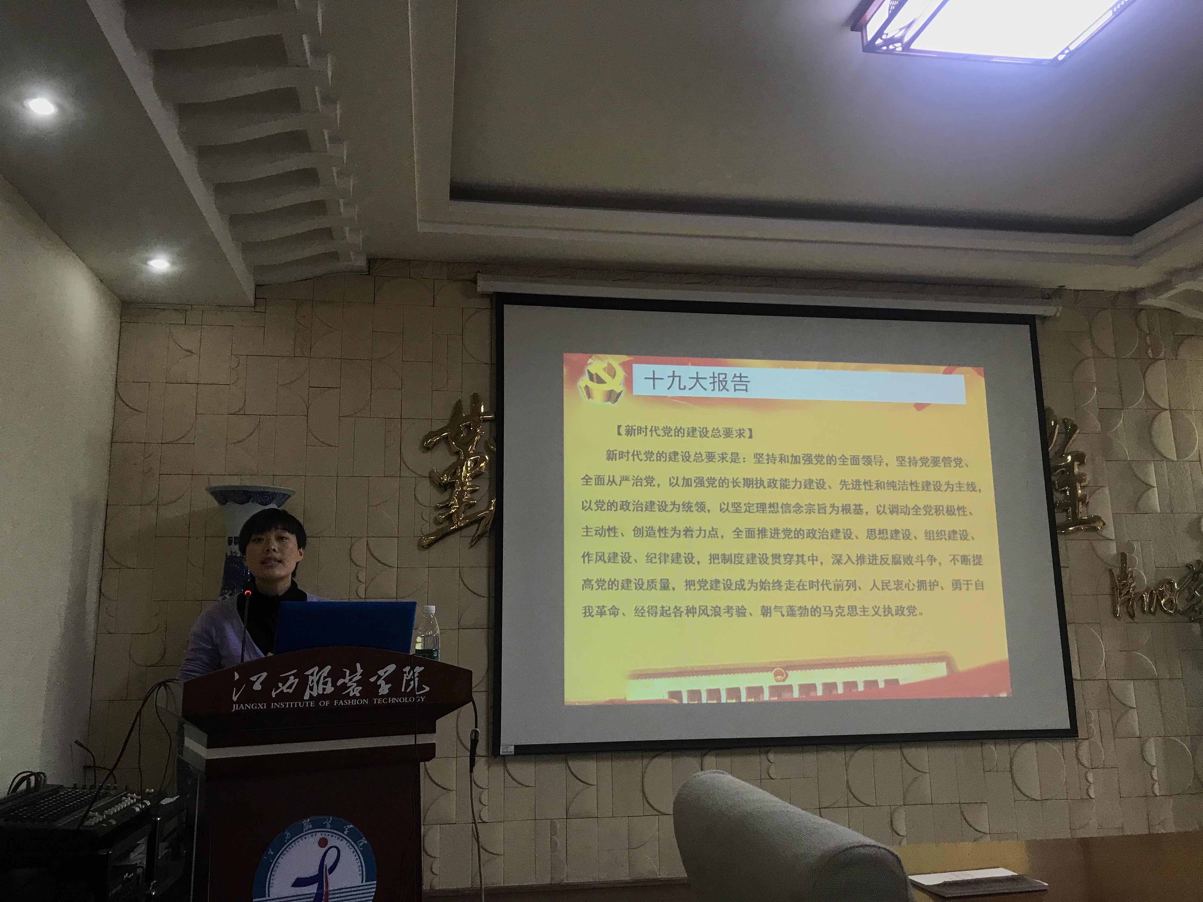 服装报讯:10月25日下午,我校学工处组织全体辅导员深入学习党的十九大会议精神并组织全体辅导员进行了发展党员工作的专题培训,学工处处长张建荣主持并讲话,学校全体辅导员参加了学习。