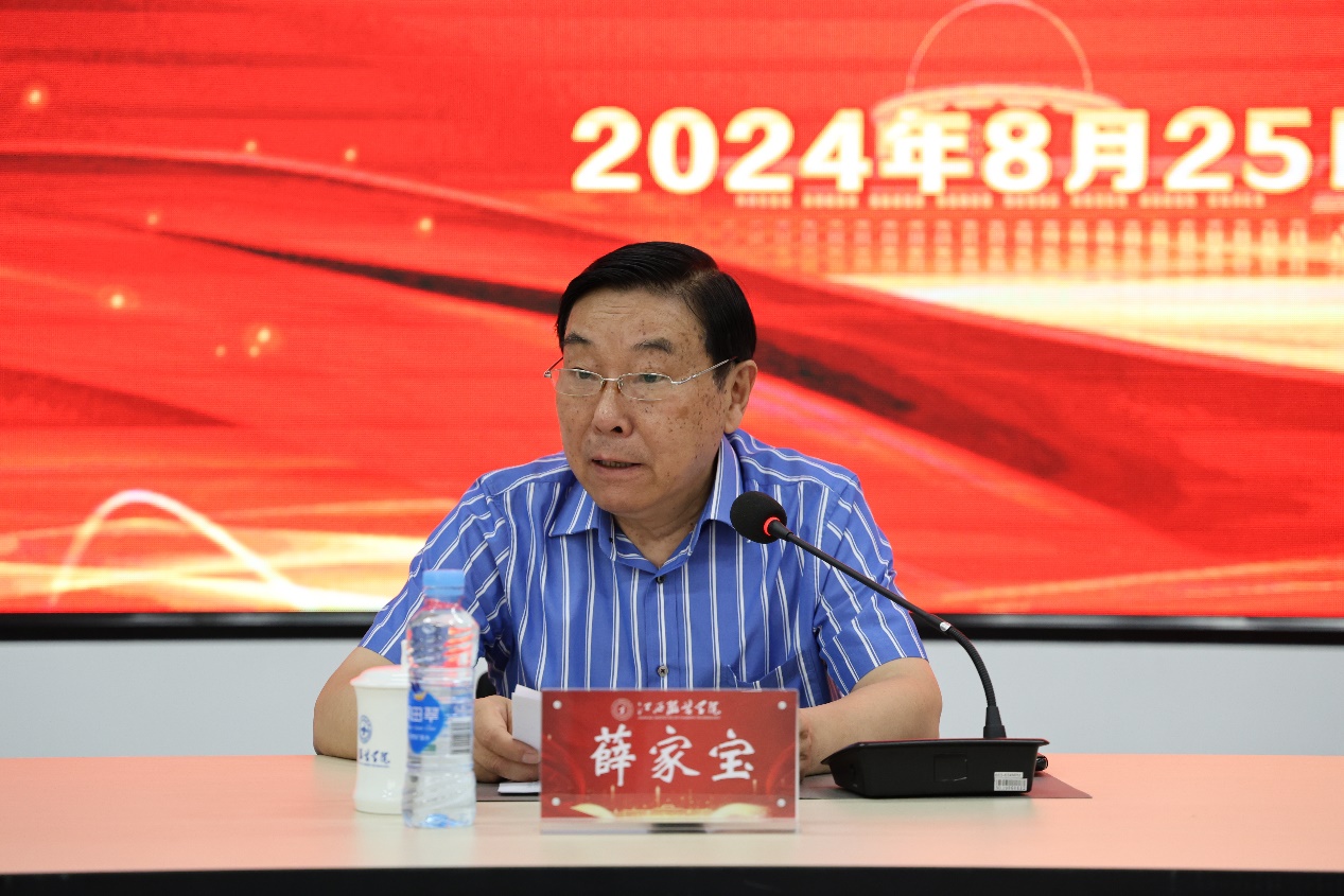 党委副书记、校长薛家宝讲话。回顾总结上半年的工作,部署2024年下半年重点工作。他指出,暑假期间,尽管面临酷暑的考验,学校各部门的教职工依然坚守岗位,无私奉献,确保了学校工作的连续性和高效性。薛家宝代表学校理事会、校党委、校行政对相关部门、二级学院,特别是暑假期间加班的教职工的辛勤付出,表示衷心的感谢!