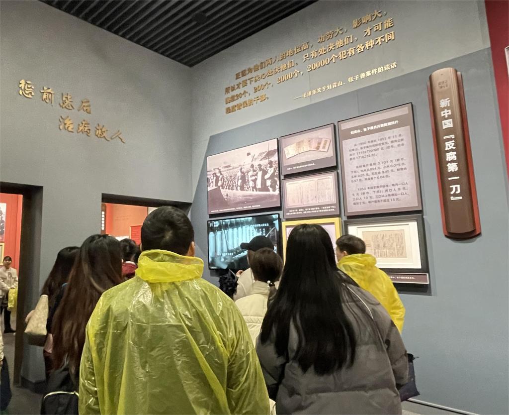 随后,学员们进入到毛泽东同志纪念馆,在陈列馆的一楼大家通过“立规矩、严执行、重教育”等几个篇章的参观学习,深切感受到中国共产党从诞生之日起就坚持全面从严治党,始终将人民的利益摆在首位,从“三大纪律六项注意”到“三大纪律八项注意”,变迁细节感受到的是领袖胸怀与智慧;学员们与一起参观学习的高中生们进行知识答题;学员们表示,通过图文结合、旧物展示的形式学习生动再现了毛主席及韶山人民的英勇风姿与革命气魄,道出了“为有牺牲多壮志,敢教日月换新天”的韶山精神。