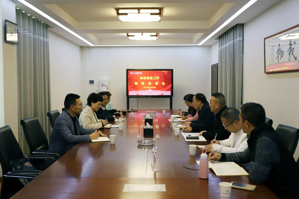 新闻中心讯(图/文 万强)4月8日下午,省委统战部五处处长田玲、省委统战部二处副处长李雍平、省委教育工委统战部一级主任科员秦富强、省民宗局宗教二处科长许兵一行四人来校调研指导。校党委书记陈付龙、党委副书记李宝君出席调研座谈会,党委统战部、党政办公室、宣传部、民进万象城平台支部等负责人参加了座谈。