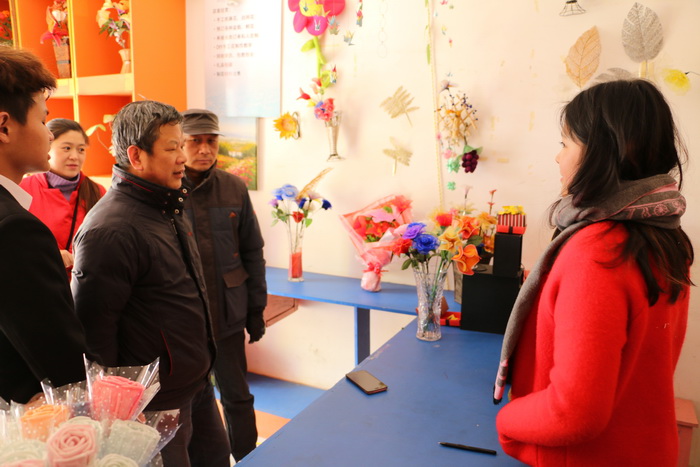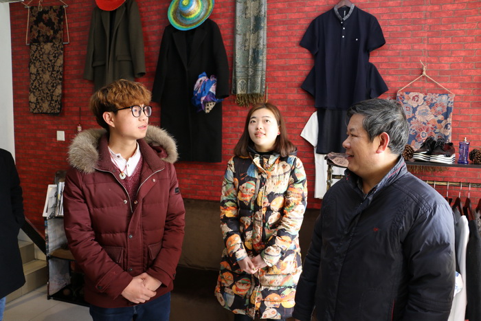 校党委书记王建元、副书记高建国参观大学生创业孵化基地,并与创业店主进行亲切交谈