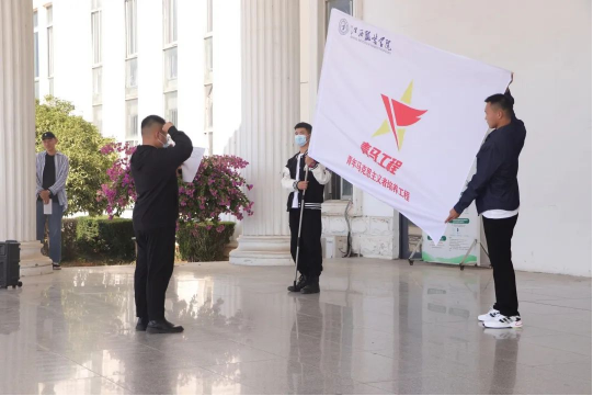 10月21日上午,我校在主教楼前举行了隆重的出征仪式。校党委副书记唐新强出席出征仪式,为2022年青春井冈行实践队伍授旗,并宣布出征。校团委书记孟安然、各专职团干部、青春井冈行实践团队带队老师及50余名队员参加仪式。团委社会实践部负责人张震老师主持了仪式。