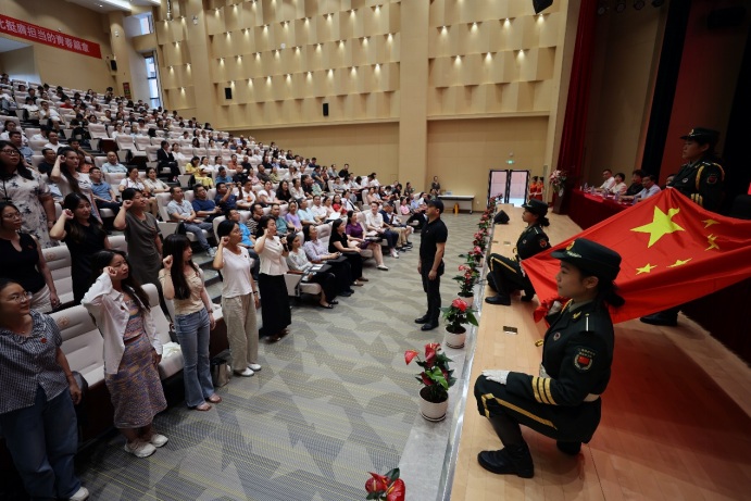 会上35名新教师代表庄严宣誓。铮铮誓言响彻会场,激励和鞭策着广大教师不忘教育初心,坚定教育信仰,誓言刻在心中,责任扛在肩上,切实担负起党和人民赋予的时代使命。