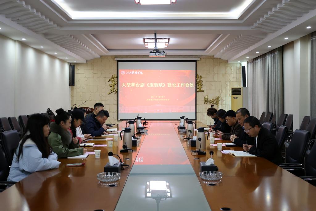 会上,朱雨春、孟安然、潘泽中、孙艺桐等分别就《服装赋》申报文化精品项目进程、队伍建设、节目排演等相关工作开展情况进行汇报。