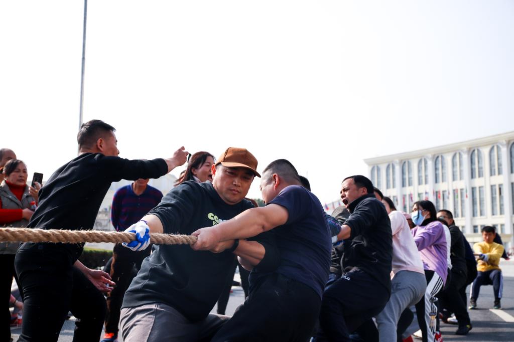 本次拔河比赛共有来自各分工会的10支队伍参赛,按照赛制要求,每支队伍共有10男5女15名运动员组成。随着裁判一声哨响,拔河比赛正式开始,参赛队员们个个斗志昂扬,握紧长绳,躬着腰,脚抵着脚,卯足劲,拼命往后拉。赛场边,拉拉队员们有节奏地挥动着双臂,一同喊着响亮而有节奏的口号,加油声、助威声此起彼伏,热烈的竞赛氛围一浪胜过一浪,赛场已然是一片欢乐的海洋,处处洋溢着全民健身的喜悦和团结友爱、拼博向上的精神。经过激烈的较量,军事体育教学部分工会以全胜战绩傲压群芳,夺得本次比赛桂冠,机关第四分工会夺得亚军,机关第三分工会夺得季军。