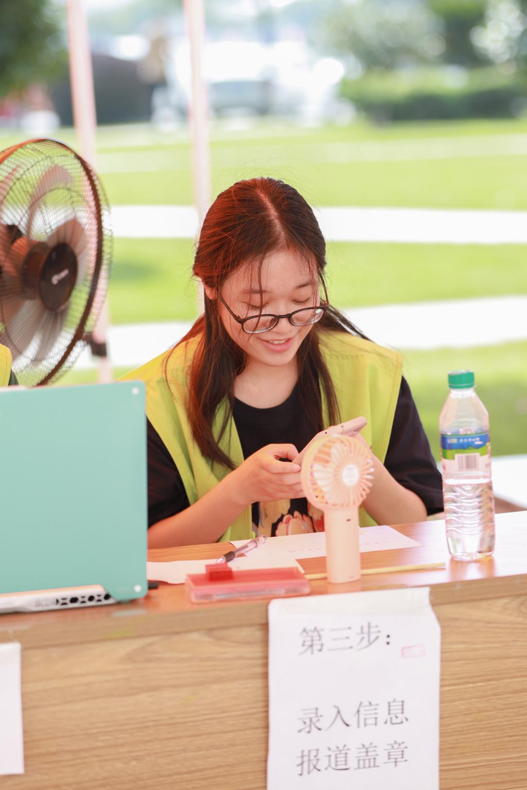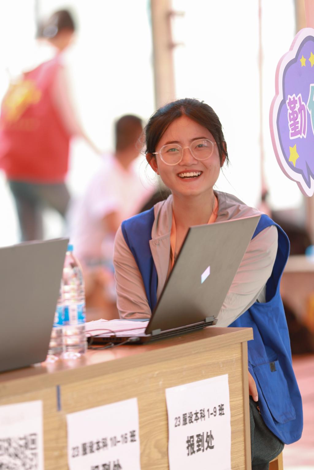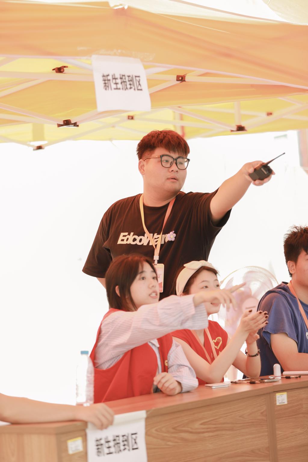 每个学院都有热心的志愿者,身穿着不同学院颜色的志愿服,坚守在岗位上,帮助新生们搬行李,为新生答疑解惑,一路温暖随行。尽管天气炎热,他们依然满怀热情,以心相迎。
