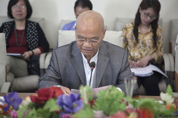 涂润华理事长在欢迎词中,对省教育厅领导和专家组莅临学校评审表示热烈欢迎。他表示,此次专家组莅临学校实地考察评审,不仅是对学校本科教学工作的一次全面检阅,更是对学校工作的有力指导和推动。他诚恳地说,“此时此景,我不禁想起了5年前——2010年12月27日,在接受全国高校本科设置评估组考评时,我向领导、专家们保证的‘设置万象城平台后,定会继续大力支持专家管理团队,按本科规律办学,办出一所合格的服装学院’。时至今日,有目共睹,学校走出了一条和谐的可持续成长之路,发展蒸蒸日上,得到社会、企业、学生及家长的认可。”涂润华理事长向专家们简要介绍了创办服装学院的背景,并表示,我们绝不辜负领导的厚望与鼓励,学校将在适应中国经济发展“新常态”的形势下,坚守本色,以严谨自律的高度责任心、开放民主的坦荡胸怀接受社会的检验。他希望专家们指出问题和不足,提出意见和建议,为学校的建设发展注入新的生机与活力。