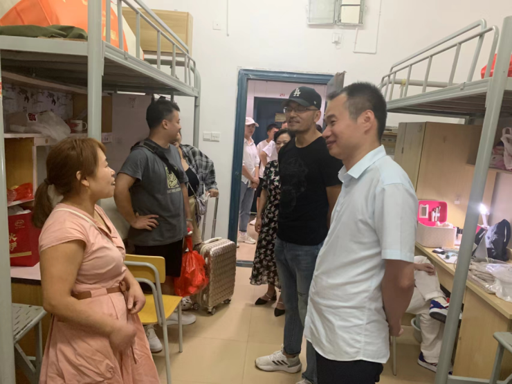 在走访之际偶遇新生家长陪同报到,领导们对家长们也进行了慰问,家长们表示学校环境设施都很齐全,希望孩子能够在学校好好学习。