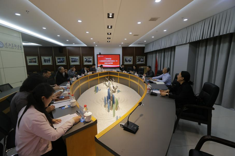 新闻中心讯(教务处供稿)为推进我校艺术类学科专业建设,优化专业结构,凝练自身特色,加强对外交流,5月22日,校长薛家宝一行5人赴河北美术学院进行考察交流。河北美术学院校长甄忠义,常务副校长张建敏,副校长张子言,副书记、副校长麻立峰,教务处处长齐志辉,发展规划处处长张立阳等热情接待了我校到访人员。随后,双方在河北美术学院一号综合楼会议室就学科定位、人才培养、师资队伍建设等方面进行了深入交流,会议由张建敏主持。