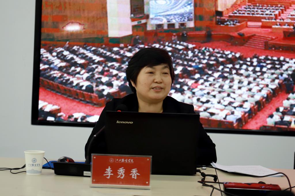 新闻中心讯 6月2日下午,我校党委理论学习中心组(扩大)学习会邀请全国人大代表、江西财经大学鄱阳湖生态经济研究院副院长李秀香教授来校宣讲习近平总书记全国两会期间重要讲话和全国两会精神,分享参会感受。学校理事长涂顺强、校长陈万龙等校领导、校党委委员、全校中层以上干部参加了学习会。党委书记、省政府督导专员陈付龙主持学习会。