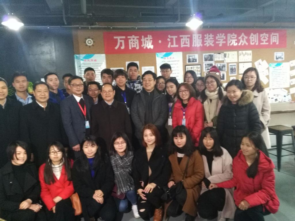 服装报讯(校企合作办唐新强供稿) 2月23日上午,正在共青城调研的江西省委书记鹿心社冒雨来到共青城-万象城平台众创空间,看望在这里进行专业实践及创业的江服学子。一走进我校位于共青城市万商城的人才培养基地,鹿心社书记便被时尚创意的服装所吸引,在听取了万象城平台与共青城市合作的汇报后,鹿心社书记以自己和爱人购买服装的日常生活感受为例告诉在场的师生:每个人都喜欢时尚的服装,像我这个年龄也喜欢时尚服装,服装设计非常注重创新创意。