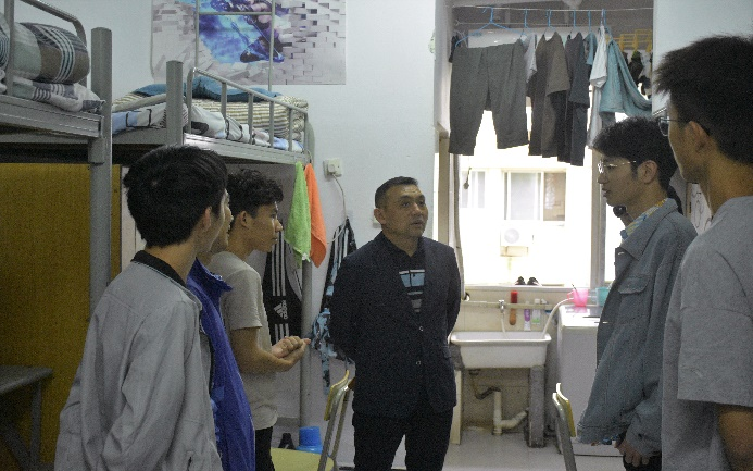 课后,为走近学生日常生活,李宝君副校长前往清河九栋学生宿舍与学生进行了亲切的交流与问候,询问了学生关于学习与生活上的问题,对清河九栋的生活基础设施进行了查看,并给予学生们思想上的指导和帮助。希望同学们在寝室的日常生活中保持宿舍的文明、和谐、美丽。李宝君副校长还鼓励同学们在学习之余多参加体育锻炼,养成良好的学习和生活习惯。