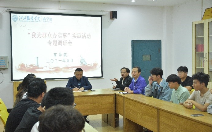 晚上,李宝君副校长与商学院辅导员和学生开展“我为师生办实事——师生座谈会”。会上,同学们提出了学习和生活上的问题,李宝君副校长一一耐心解答,帮助同学们解决了相关问题,并对本次座谈会的意见和建议进行了收集和归纳。