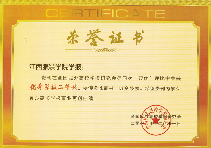 服装报讯(杜佳琦) 在第一届全国民办高校学报研究会“双优”评比中,我校学报荣获优秀学报二等奖。