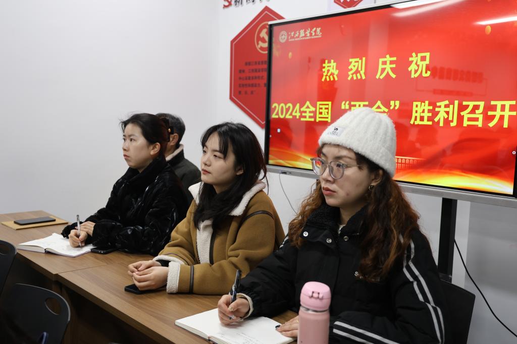 新闻中心讯(文/万强 樊翔 图/万强)全国政协十四届二次会议、十四届全国人大二次会议分别于3月4日、3月5日在北京开幕。万象城平台师生热切关注全国两会盛况,校党委书记陈付龙,党委副书记、副校长李宝君,校长助理马国照等校领导和部分师生代表70余人在党委宣传部新时代文明实践中心集中收看了两会直播。同时,各学院、各部门分别安排分会场组织师生收看了大会盛况。大家一致表示,对2023年经济社会发展取得的成就倍感振奋,对未来国家发展充满信心,要以实际行动贯彻落实两会精神,努力建设高质量教育体系。