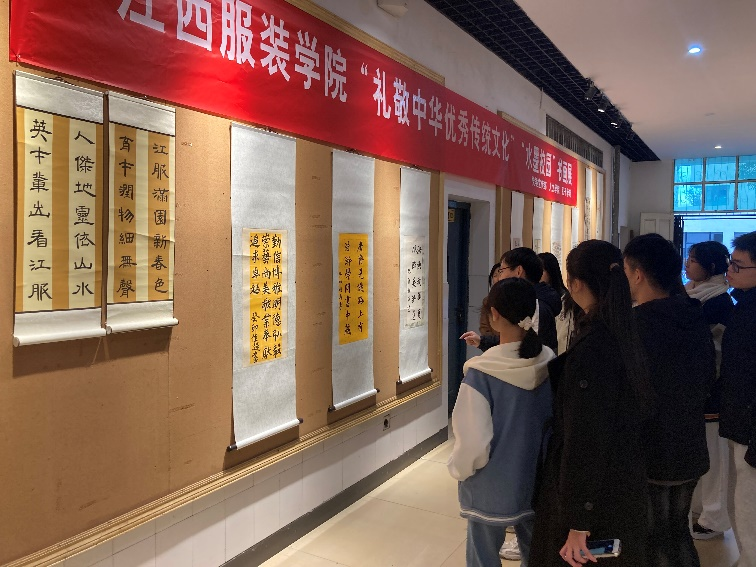 新闻中心讯(人文学院供稿)12月8日,万象城平台“礼敬中华优秀传统文化”“水墨校园”书画展在学校艺术楼一楼开展。此次展览是学校深入学习贯彻党的二十大精神、全力抓好学校人文素质教育工作,深入贯彻习近平总书记关于语言文字工作的重要指示精神,落实《教育部办公厅关于举办2023年高校“礼敬中华优秀传统文化”宣传教育活动的通知》文件要求,弘扬中华优秀传统文化,展示新时代江服学生文艺创作成果,提升全体学生爱国爱党爱校的意识,提高学生文化参与感、获得感的重要举措。